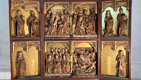 Ein bedeutendes kunsthistorisches Zeugnis stellt der um 1500 gefertigte Schnitzaltar im nördlichen Seitenschiff dar. Er zeigt ikonografisch aufschlussreiche Szenen, darunter die Anbetung der Heiligen Drei Könige sowie die Darstellung der „Maria selbdritt“. Weiterhin finden sich Darstellungen der heiligen Ursula mit den elftausend Jungfrauen sowie das Martyrium von zehntausend Rittern. Das Bildprogramm wird durch Figuren prominenter Heiliger wie Johannes den Täufer und Brigitta von Schweden vervollständigt.